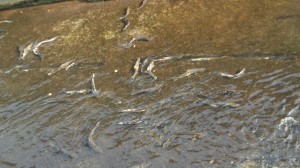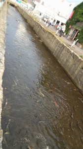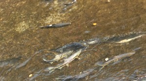(小樽の川(水路)産卵 鮭の群れ)
